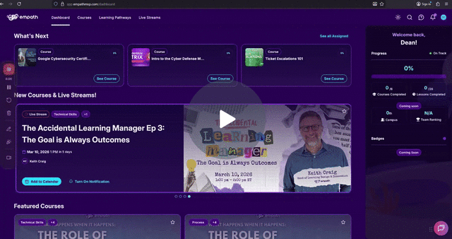 Empath requires content to be assigned before progress and knowledge checks can be tracked. If an employee finds a course or pathway that has not been assigned to them, they can request assignment approval.
