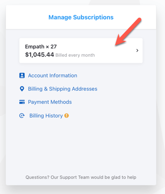 To make subscription changes, you’ll need to sign in with the email address of an approved Empath billing user.